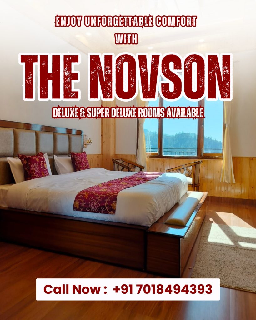 Book your stay at The Novson and enjoy modern comfort, scenic surroundings, and unforgettable moments in the lap of the Himalayas.